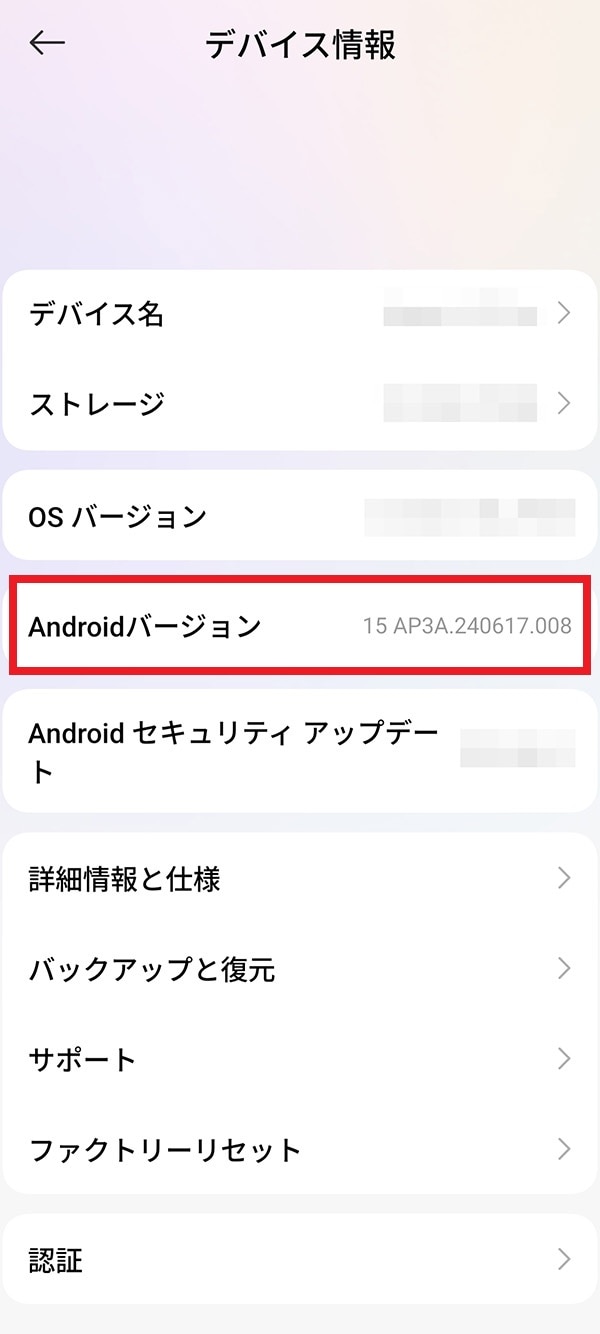 3.表示されたAndroidのバージョンを確認する